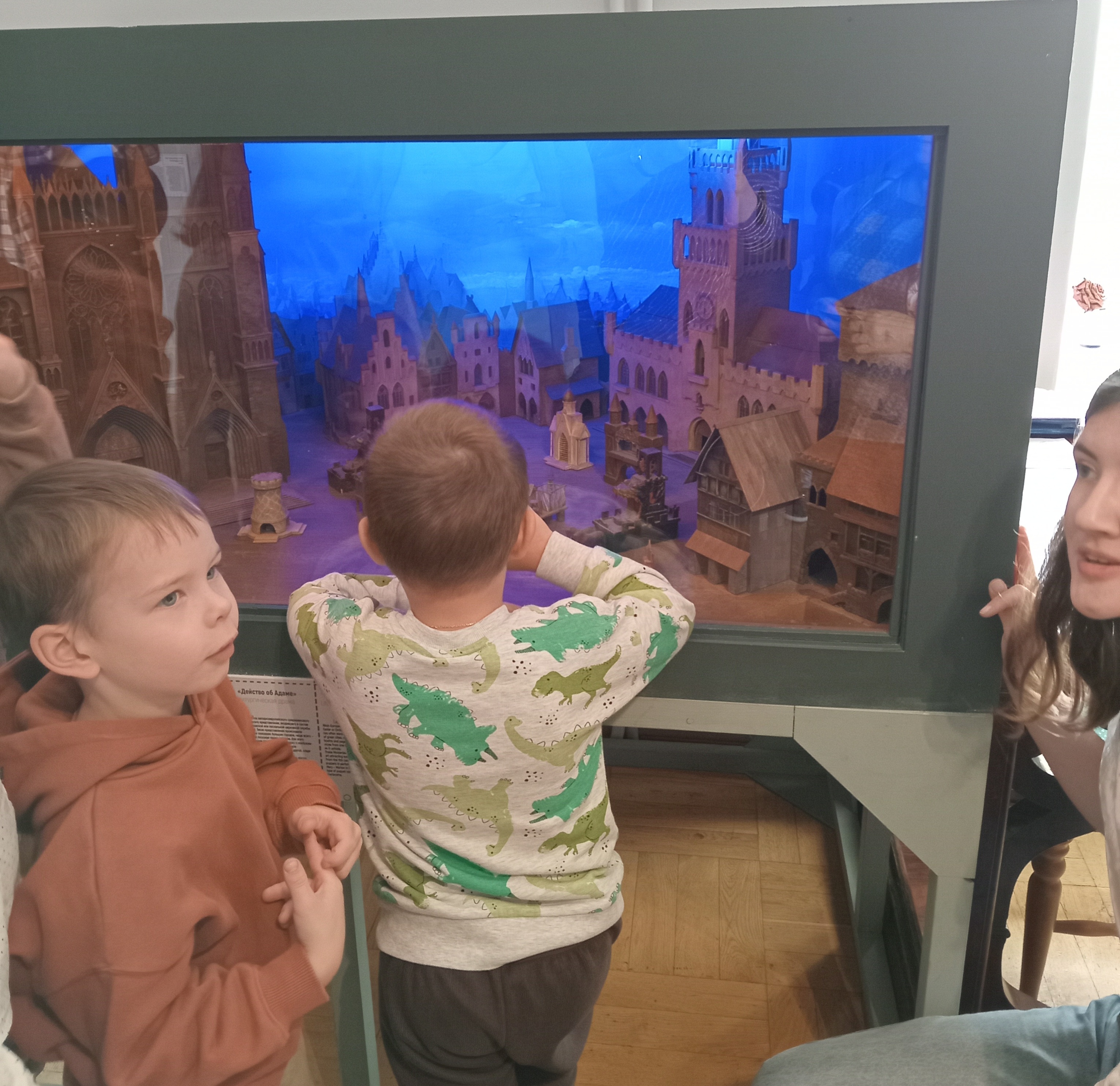 Завершением Недели музыки стала познавательная экскурсия в Музей театрального и музыкального искусства. Он находится на улице Зодчего Росси дом 2 и имеет несколько филиалов в нашем городе. Дети и их родители узнали много нового и интересного об истории театра, его закулисья. Узнали, как создаётся спектакль, и какими приспособлениями он озвучивается. Дети сами издавали звуки стука колёс поезда, шум морского прибоя, дождя и грома. А в конце экскурсии состоялся импровизированный концерт на театральной сцене, на которой наши дети с удовольствием выступали.