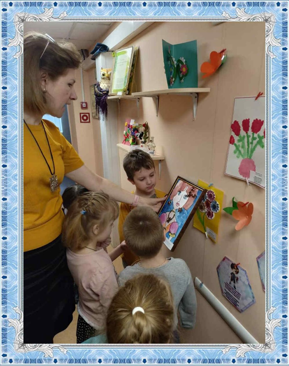 В начале марта в нашем детском саду прошла выставка совместных работ взрослых и детей, посвященная Международному женскому дню. Ребята с удовольствием снова встретились с совой Мудреной, поговорили с ней о празднике 8 Марта, отгадали совушкины загадки, связанные с профессиями наших мам. Дети нашли на выставке отгадки, вылепленные из пластилина воспитанниками группы «Ромашки». А представленный на выставке лепбук, познакомил ребят с редкой профессией – дизайнер декоративно-прикладного искусства. Мудрена поиграла с детьми в занимательную игру: «Какая моя мама?» и ребята нашли черты своих мам в представленных портретах. Но особый интерес вызвали у дошколят букеты для мам, выполненные в самых разных техниках. Все работы неповторимы и оригинальны, но всех их объединяет нежность, теплота и любовь к нашим дорогим мамам. И в конце экскурсии ребята, бережно передавая сову Мудрену друг другу, пожелали здоровья, любви и красоты своим любимым мамочкам.