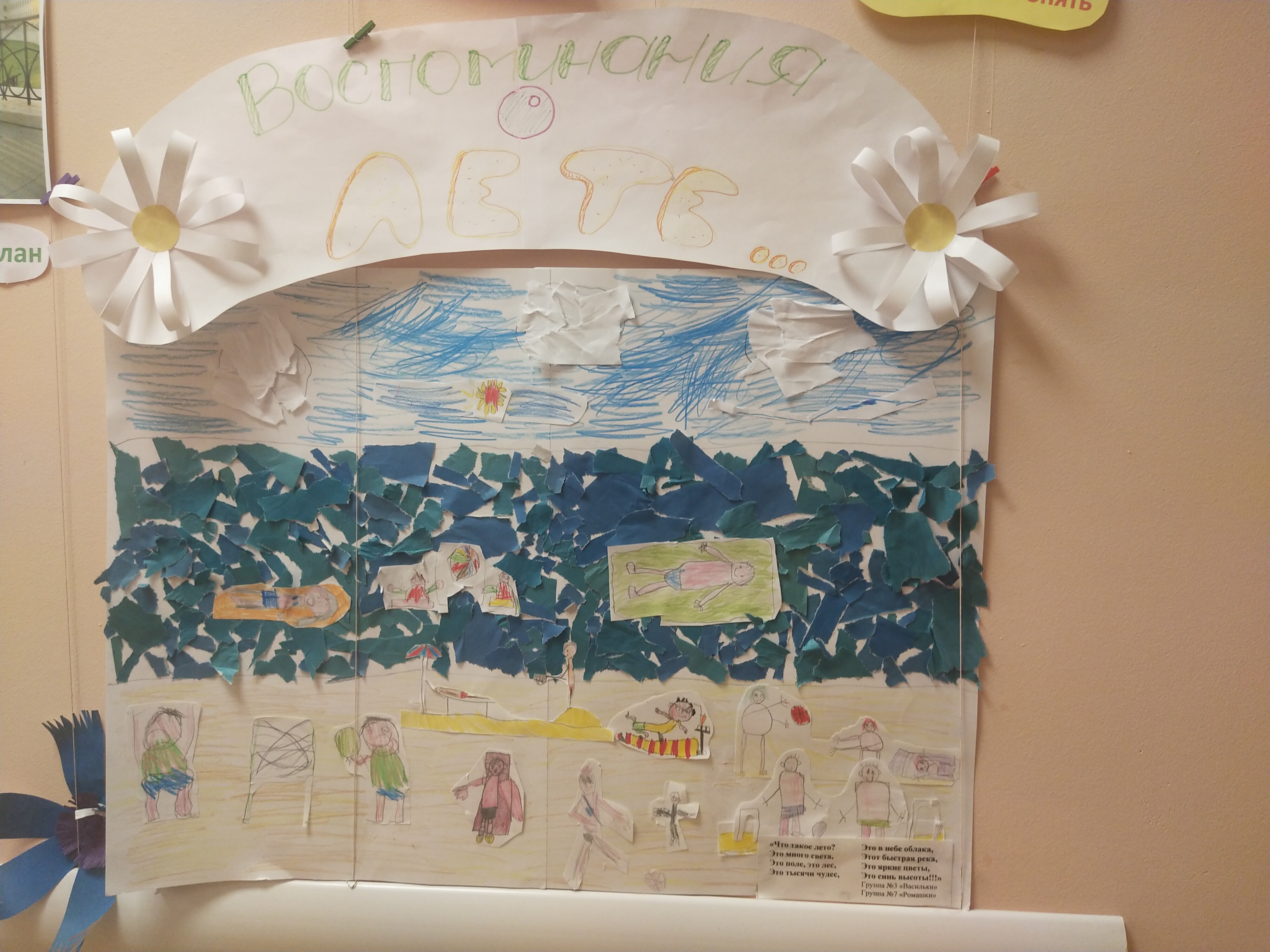 Как приятно вспомнить летние деньки и поделиться впечатлениями с друзьями! Дети с родителями и педагогами сделали вместе поделки, аппликации, рисунки. Ребята вместе с воспитателями и с родителями посетили выставку, с интересом рассматривали фотографии и поделки, рассказывали о летнем отдыхе.