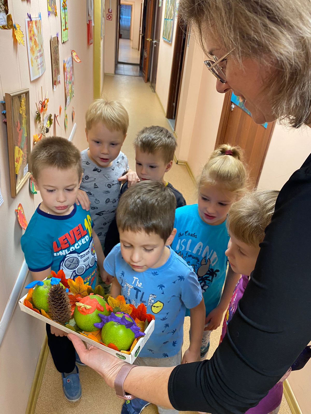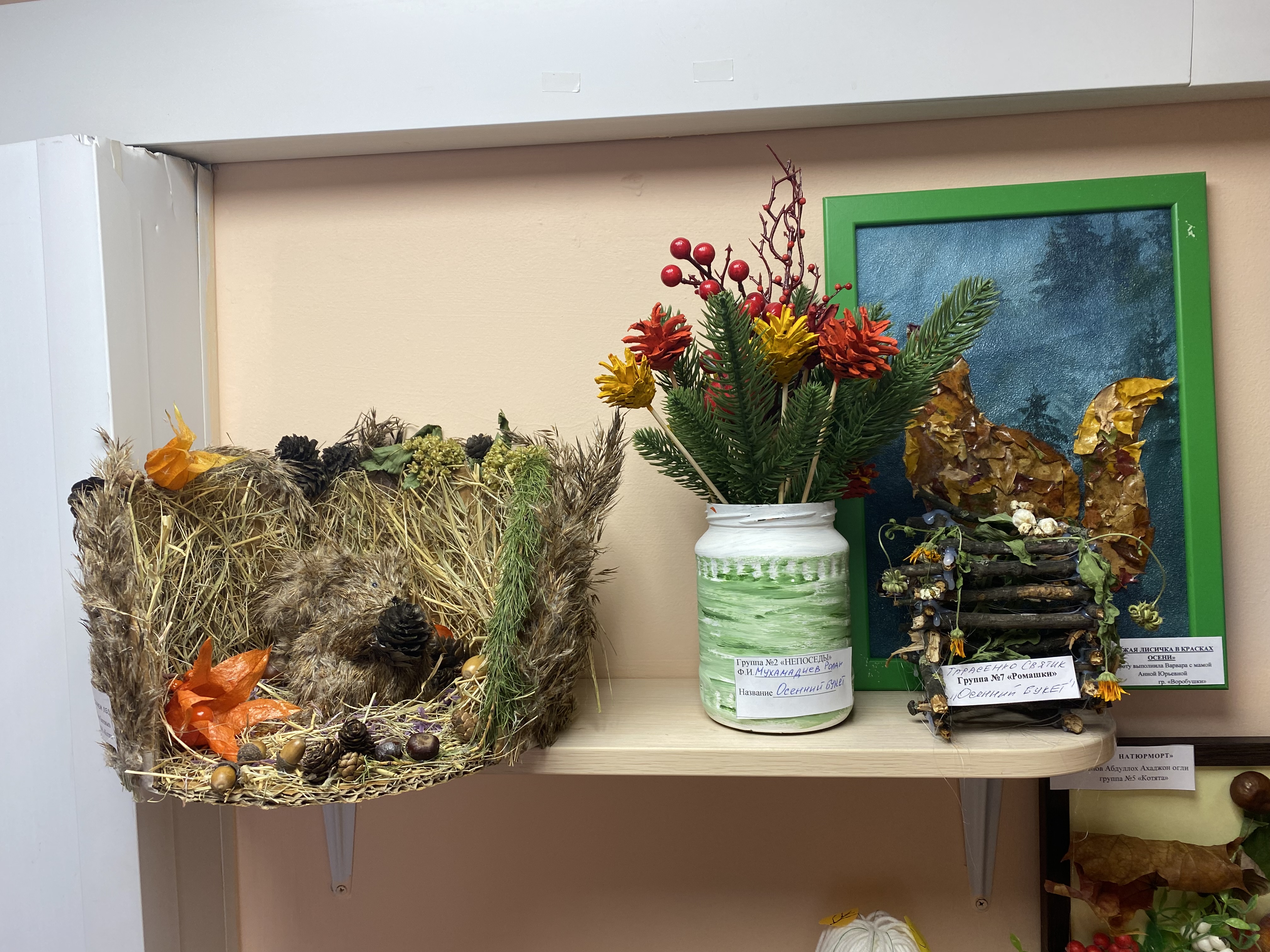 Традиционно в нашем детском саду проводятся выставки детского творчества. Не прошла стороной и чудесная пора Осени, которая вдохновляет своей яркостью и пестротой красок на воплощение прекрасных творческих идей. С 12 октября в нашем детском саду проходила выставка поделок из природного материала «Осенние фантазии». На выставке представлены работы детей, созданные совместно с родителями и педагогами. Для создания неповторимых шедевров использовались дары осени – овощи, фрукты, сухоцветы, шишки, мох, ягоды. В каждой работе прослеживается творческая индивидуальность и фантазия каждого ребенка. Все работы оригинальны, неповторимы и интересны! Дети группы «Васильки» с большим интересом посетили выставку, отгадывали загадки, придумывали названия для экспонатов, окунулись в чудесный мир осенних фантазий!
