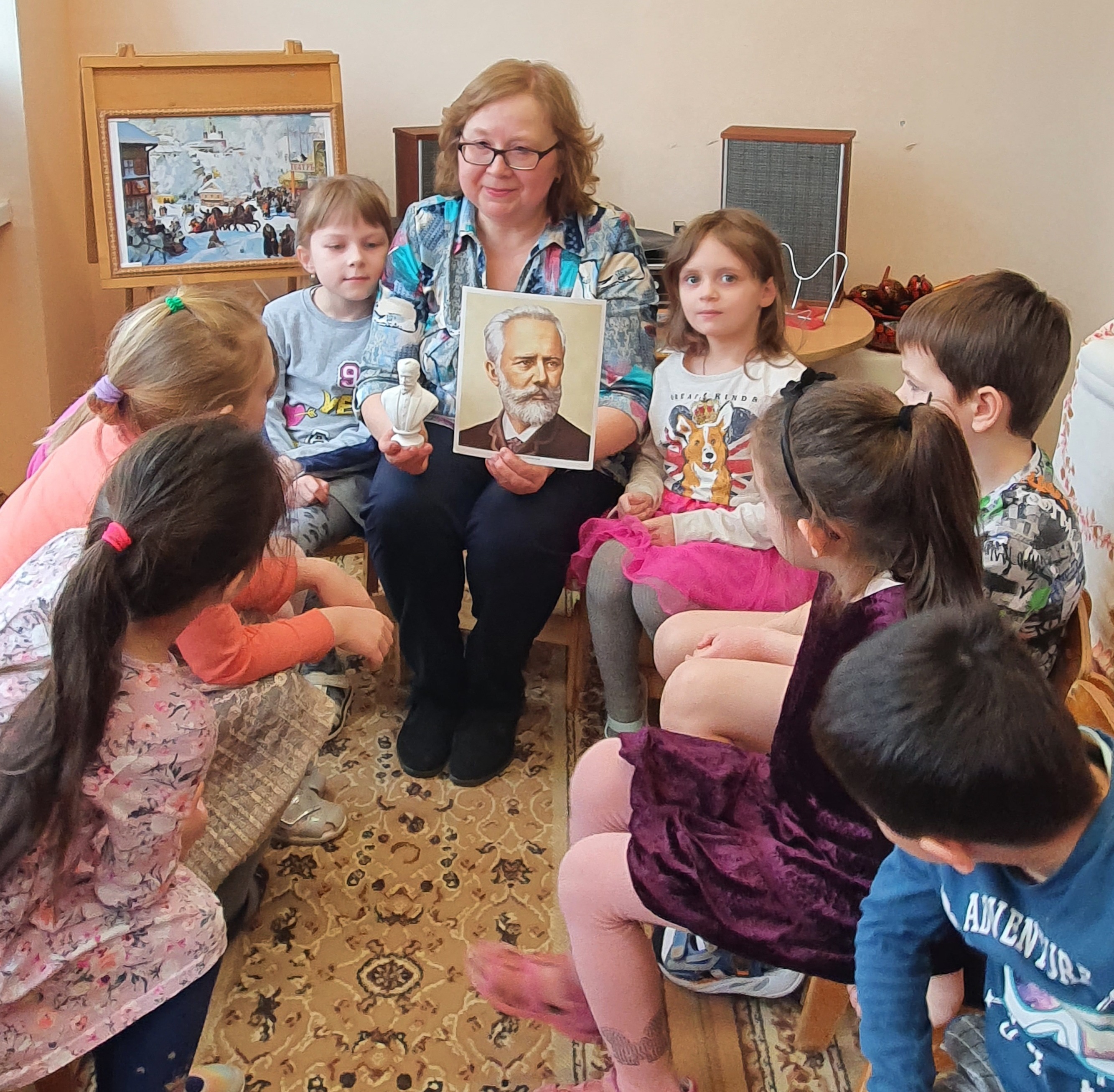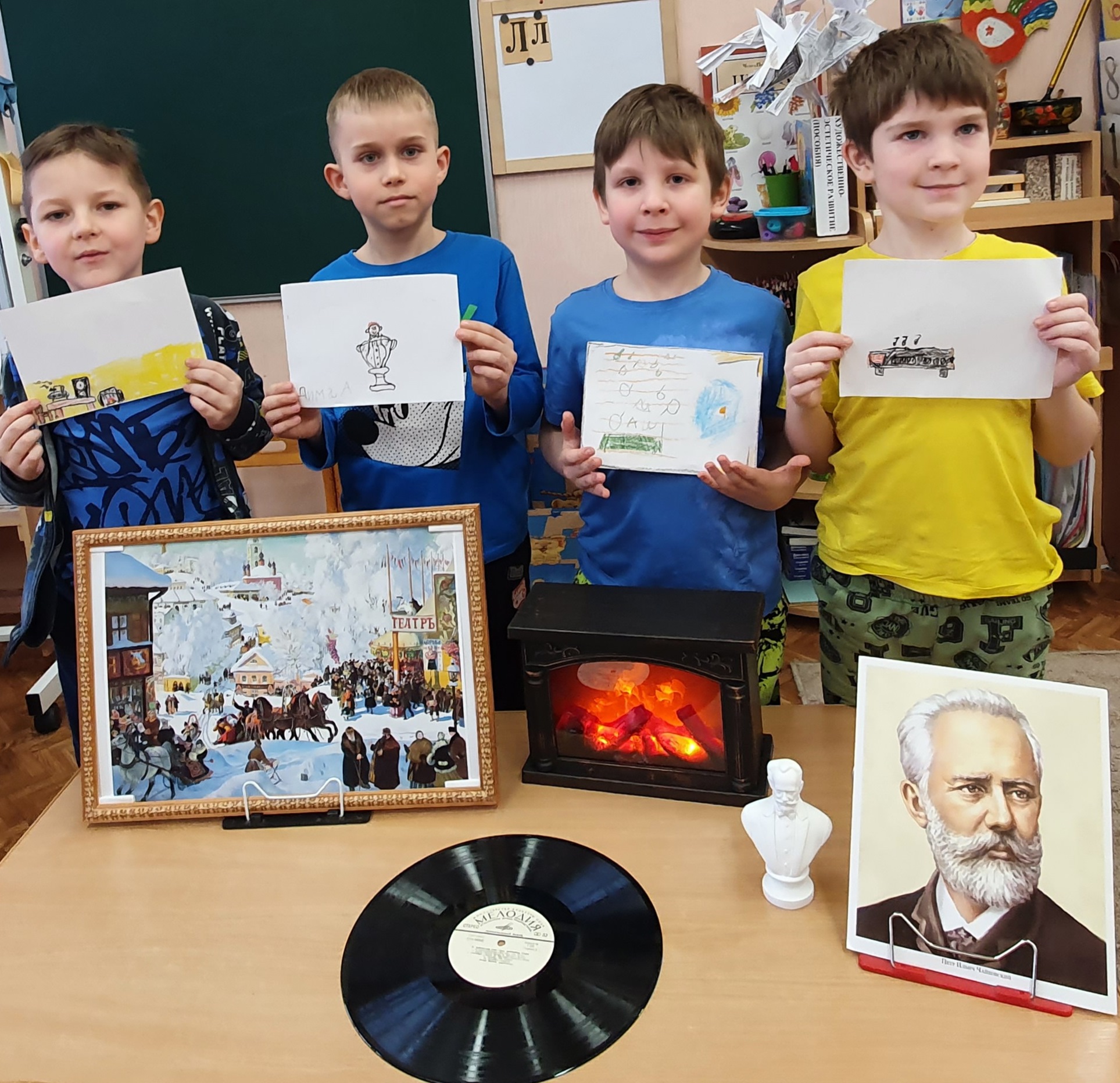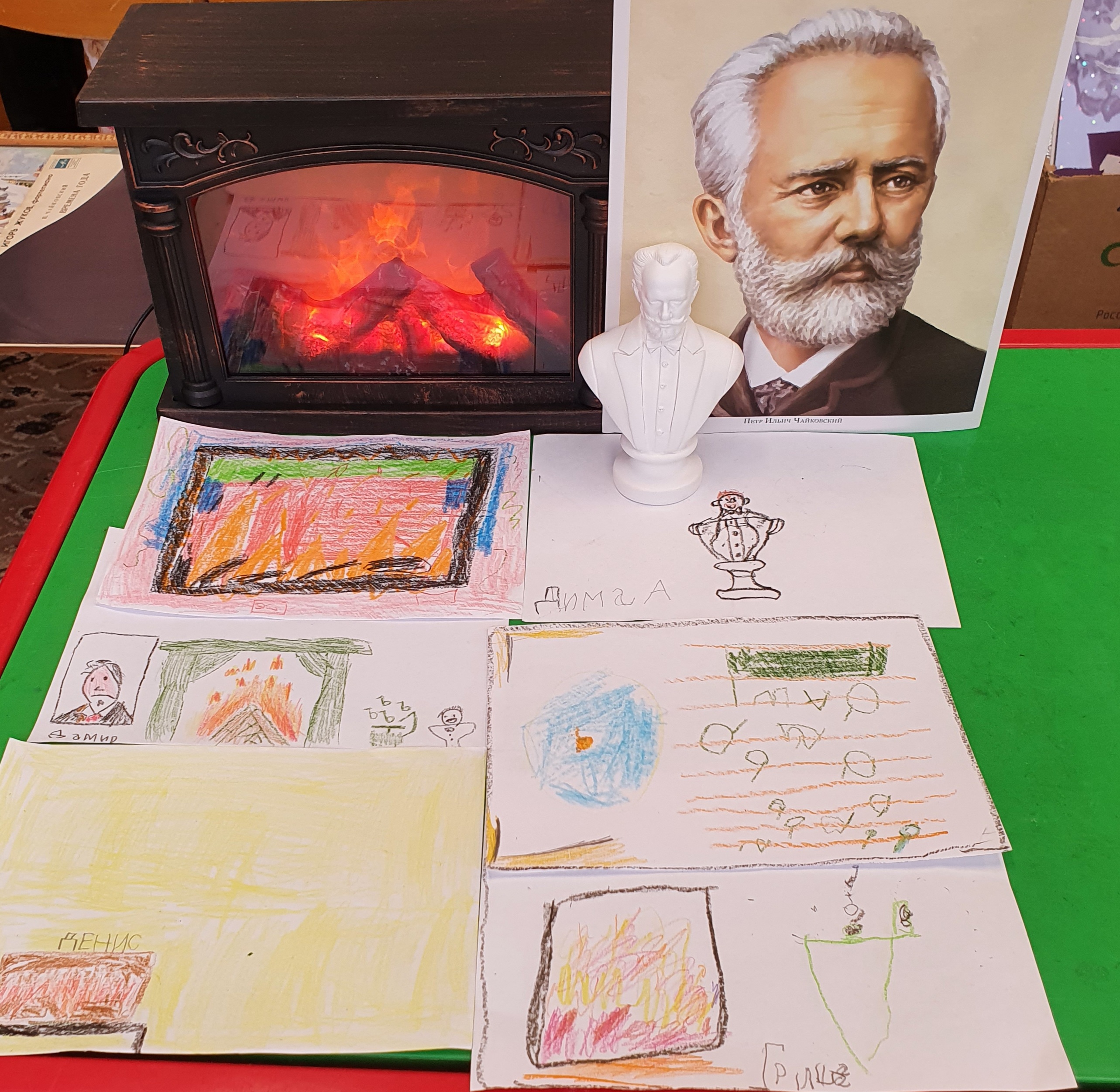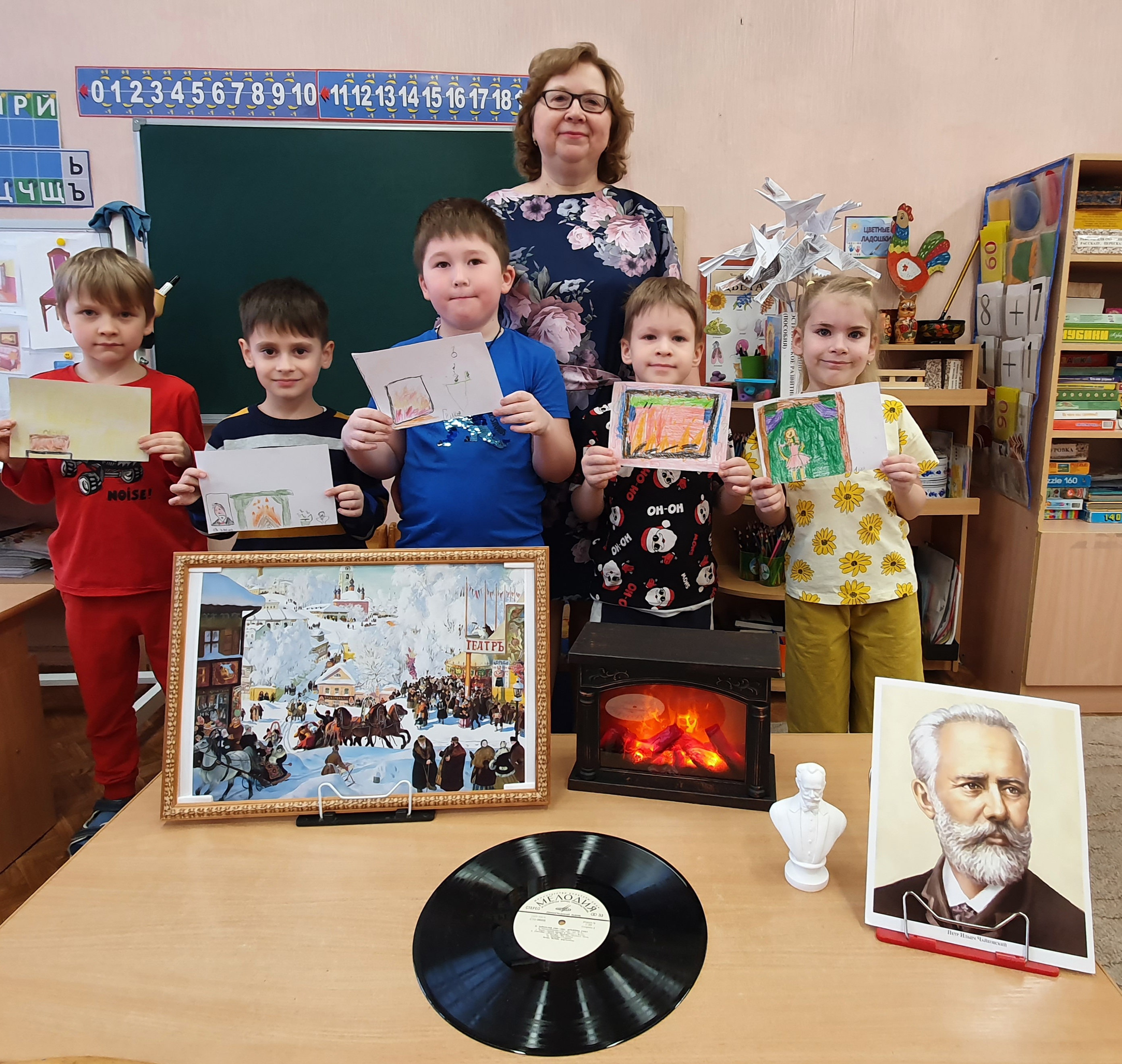 На музыкальном занятии воспитанники подготовительных групп слушали пластинку с музыкой П.И. Чайковского из фортепианного цикла «Времена года». Дети познакомились с произведениями «У камелька» и «Масленица», удивились непривычному звучанию музыки с пластинки. Свои впечатления ребята выразили в рисунках.