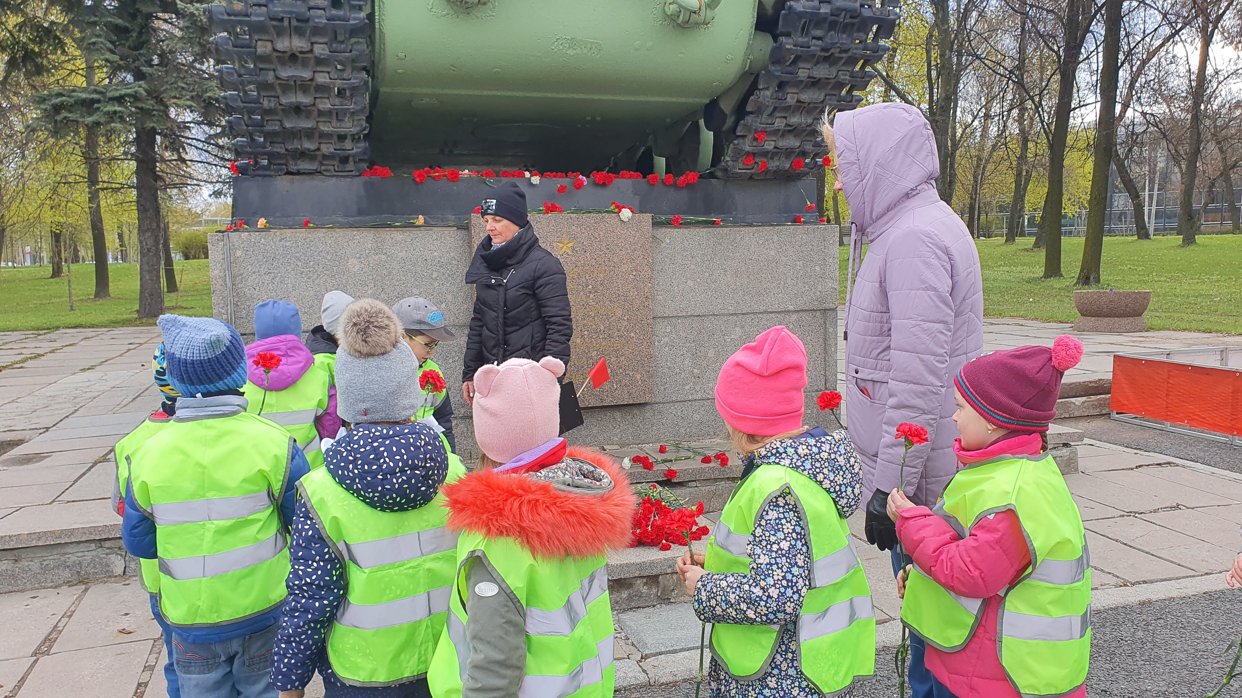 Педагоги, родители и воспитанники ДОУ № 61 Кировского района Санкт-Петербурга возложили цветы к памятнику «Танк-Победитель» КВ-85 в память о защитниках нашей Родины от немецко-фашистских захватчиков в годы Великой Отечественной Войны.