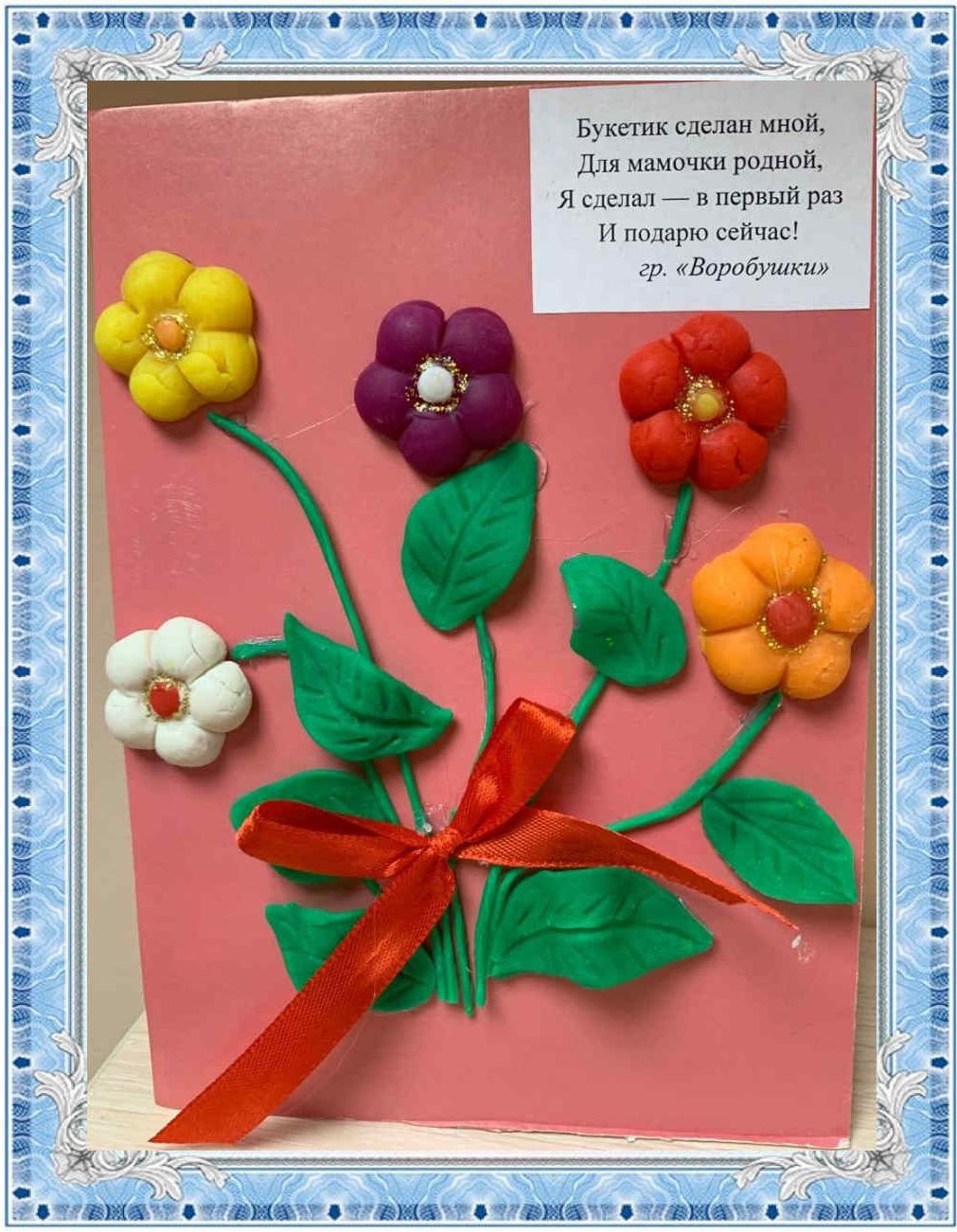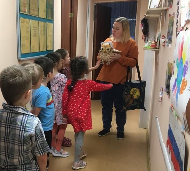 В начале марта в нашем детском саду прошла выставка совместных работ взрослых и детей, посвященная Международному женскому дню. Ребята с удовольствием снова встретились с совой Мудреной, поговорили с ней о празднике 8 Марта, отгадали совушкины загадки, связанные с профессиями наших мам. Дети нашли на выставке отгадки, вылепленные из пластилина воспитанниками группы «Ромашки». А представленный на выставке лепбук, познакомил ребят с редкой профессией – дизайнер декоративно-прикладного искусства. Мудрена поиграла с детьми в занимательную игру: «Какая моя мама?» и ребята нашли черты своих мам в представленных портретах. Но особый интерес вызвали у дошколят букеты для мам, выполненные в самых разных техниках. Все работы неповторимы и оригинальны, но всех их объединяет нежность, теплота и любовь к нашим дорогим мамам. И в конце экскурсии ребята, бережно передавая сову Мудрену друг другу, пожелали здоровья, любви и красоты своим любимым мамочкам.