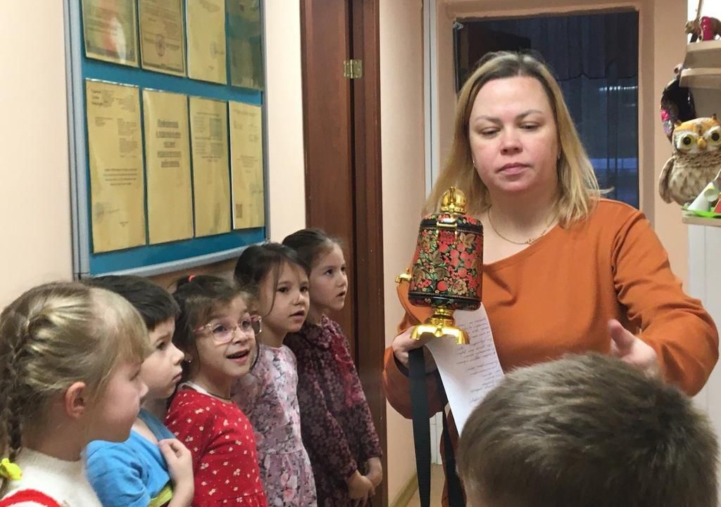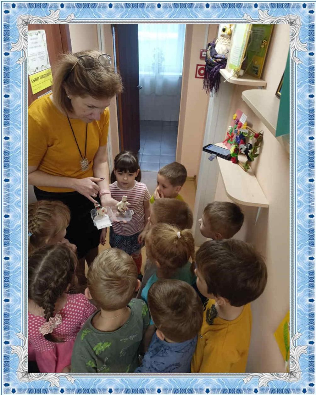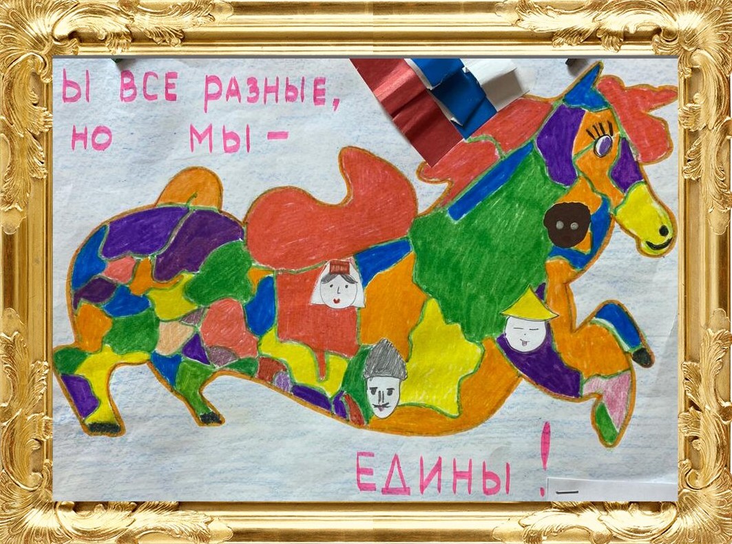 Выставка детских работ «Что мы Родиной зовем?» успешно прошла в Детском саду. Дети подружились с хранительницей выставки совой Мудрёной и догадались, почему ее так зовут. Мудрена загадывала детям не простые загадки, в них были скрыты символы нашей страны. Ответы прятались в сумочке у совы. Это самовар, матрешка, балалайка, гармонь, кулич и пр. Дети оживленно отвечали на вопросы совы о России, ее столице и традициях. В конце экскурсии ребята передавали друг другу желтый мячик - «Солнышко единства» и желали народу России добра, мира и здоровья.